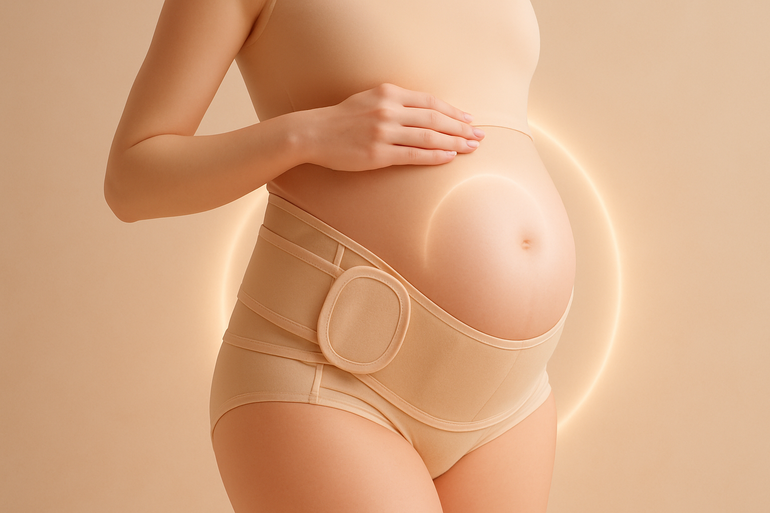 BellyAura™ hamilelik sürecinde bel ve pelvis desteği sağlamak için tasarlanmıştır.